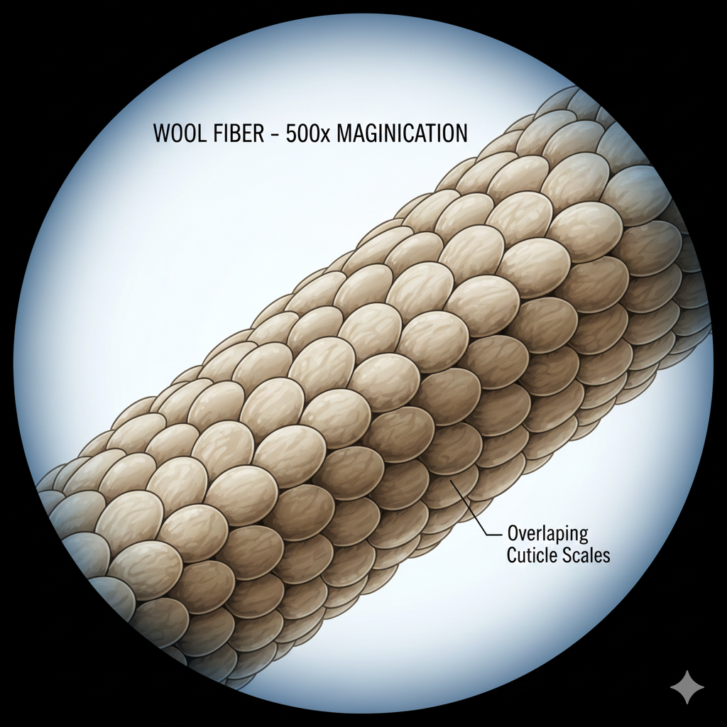 The overlapping scale structure of wool fibers (visible under microscope) creates friction that allows water molecules to be transported away from the skin efficiently. This is why wool performs better than other natural fibers for moisture management.
